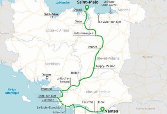 Exemple d'itinéraire proposé par France Vélo Tourisme. 450 km