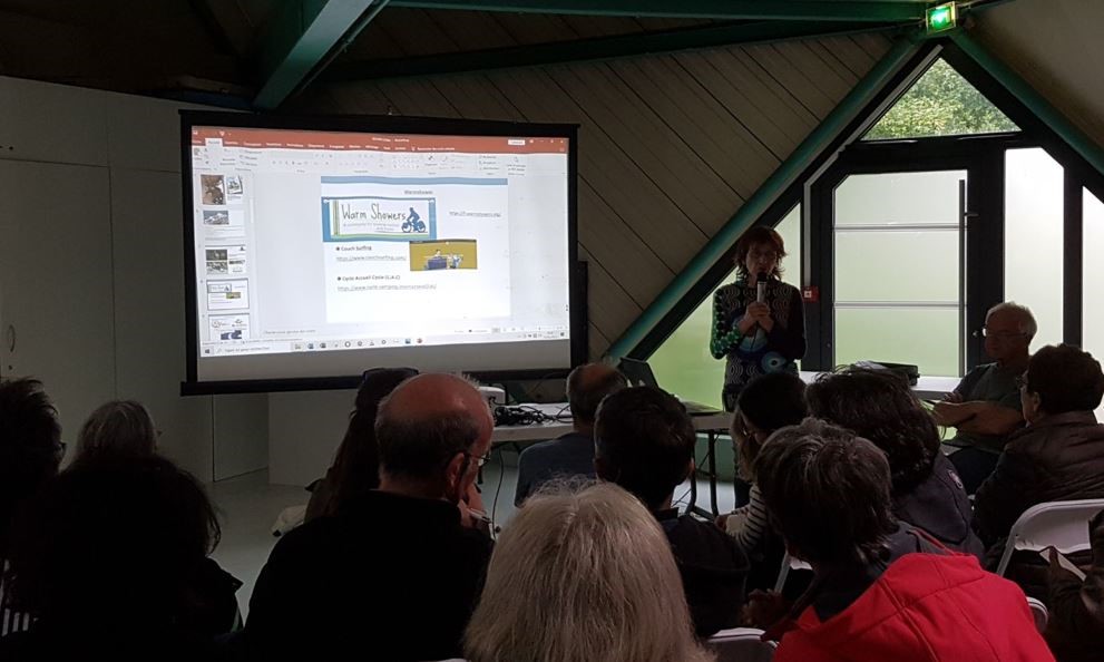 Les participants pourront vous retrouver ensuite dans la salle, surtout si vous aurez réserver une table pour exposer d'une façon ou d'une autre vos vavances à vélo.